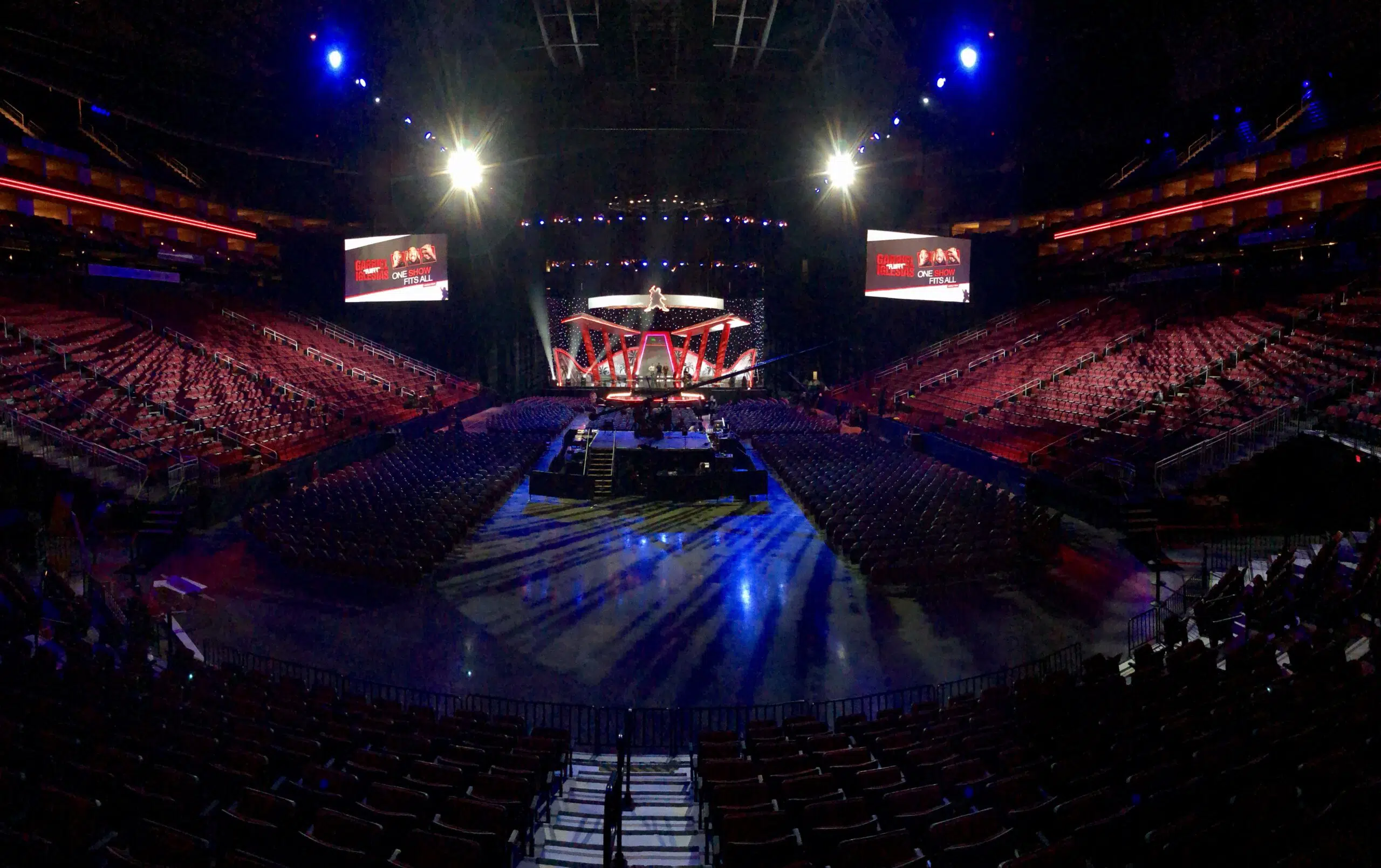 The difficulty level of this scenic construction project was pretty high because most of the fabrication consisted of welded steel framing. For instance, the curved walls had to be a welded steel frame which meant we had to bend square tubing into perfect compound curves. The ceiling consisted of several grid frames we welded up in order to create the arch. The huge columns were each a different size and cut to sit at an angle inside a steel frame. One other aspect of this scenic construction project that made it difficult is that almost all of the elements had to have DMX controlled led lights running along them, it was several hundred feet. Oh, and the last wrench thrown into the mix was the Toyota center would not allow any of the stage design scenic elements to be anchored into the stage deck.